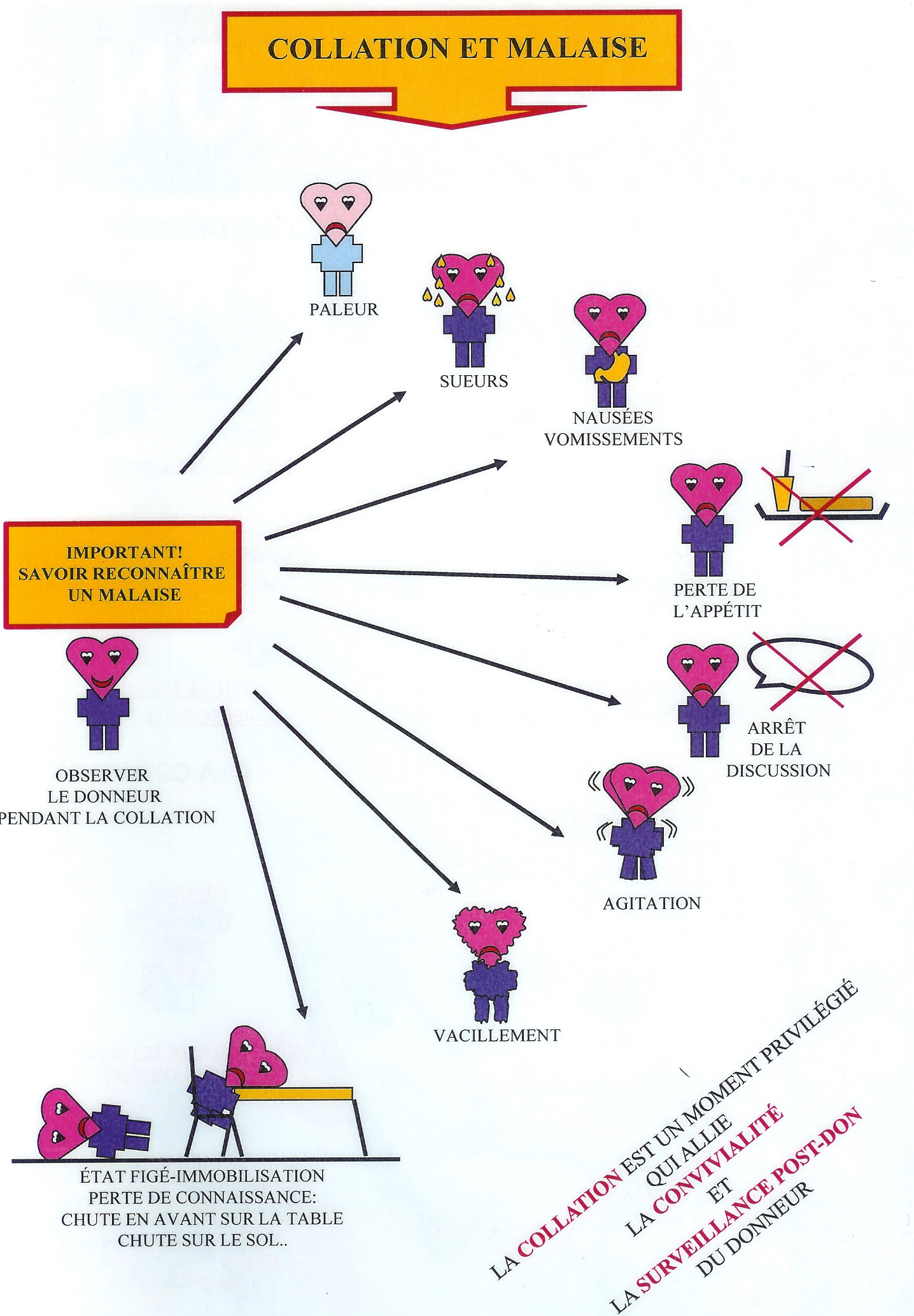 Avoir les bons gestes lors des collectes : Protection et information post-don - Collation et malaise - Gérer un malaise - Hygiène, préparation ou distribution de la collation -