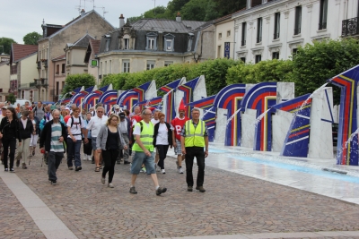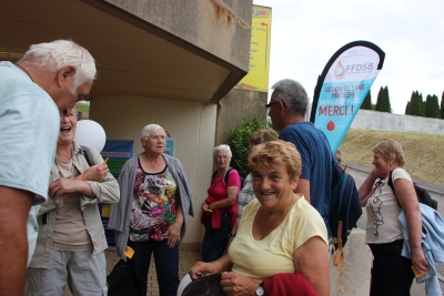 Avant le départ, le groupe s'est retrouvé pour une photo devant la salle Georges-Brassens puis par petits groupes, les marcheurs se sont retrouvés au pied des thermes de la ville après être passés devant les fontaines crachant leurs eaux limpides. Françoise, une passante contrexévilloise, a tenu à rendre hommage aux donneurs de sang alors qu'elle venait de faire son premier don.
