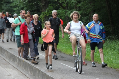 Sitôt la photo réalisée, chaque groupe accompagné par un meneur a suivi le parcours long d'environ huit kilomètres. Chacun a pu profiter pleinement de la beauté des décors du lac de la Folie mais aussi de maman Cygne et de ses petits. Bruno, amicaliste de Darney, n'a pas hésité à utiliser son grand bi pour son plus grand plaisir et celui des autres le voyant manoeuvrer avec dextérité son engin à deux roues. A tel point que certains, jeunes et moins jeunes, s'y sont essayés.
